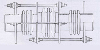 This kind of expansion joint contains two compensating bellows at each ends and a balanced bellows in the middle. The thrust of expansion joint due to internal pressure is restrained by means of tie devices(such as tie rods or initial connecting pipes)interconnecting the compensating bellows so that only the intermediate anchor is required in pipe line. This type of expansion joint can absorb axial movement only.